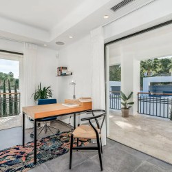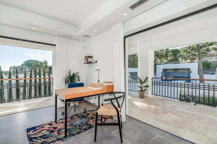 This villa offers an incomparable feeling of space, privacy and natural light. Stunning views of La Concha from several rooms, including the open-plan kitchen, the impressive lounge with several seating areas and a cozy dining room. These spaces connect seamlessly with an idyllic wrap-around terrace overlooking the pool, gardens, and golf course.