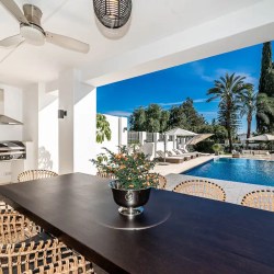 The heated infinity pool with its various lounging areas, outdoor barbecue and dining table provide the perfect setting for entertaining guests. In addition, there is a chill-out area where you can relax and admire the views of the golf course, La Concha mountain and the villa itself.