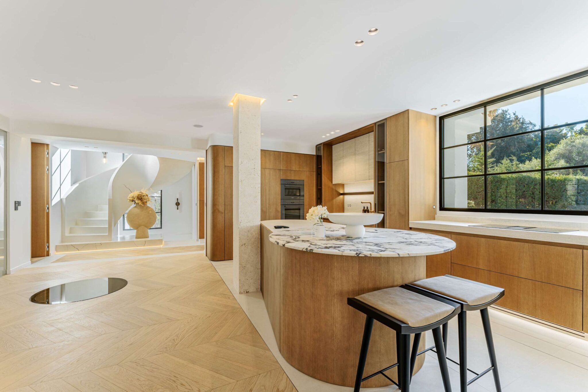 Step into unparalleled luxury in this stunning 5 bedroom villa, each featuring it’s own en-suite bathroom, spread across three spacious floors. The villa showcases exceptional architectural details, including a grand hand crafted spiral staircase, a custom designed kitchen island, and elegant oak finishes throughout.