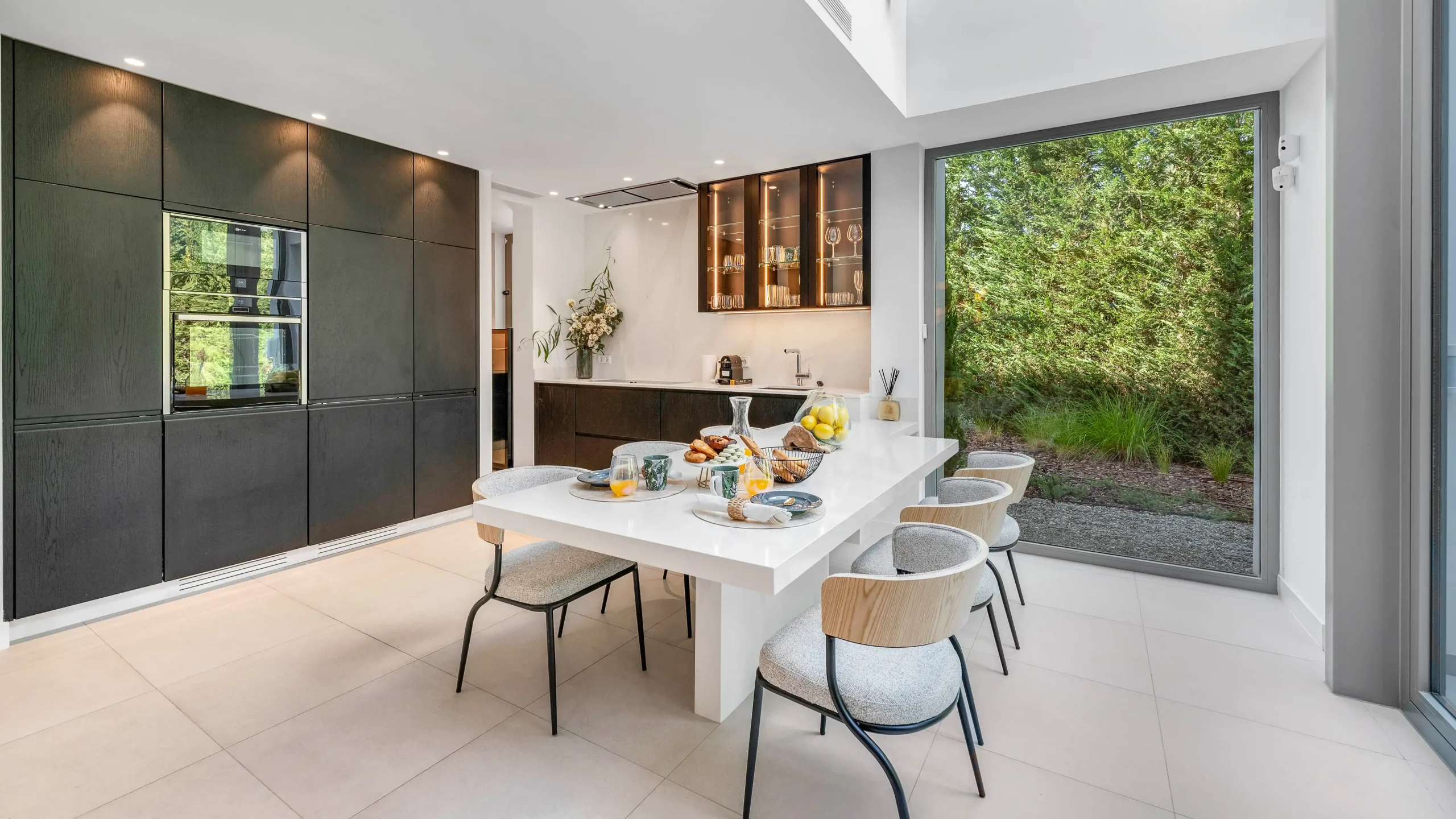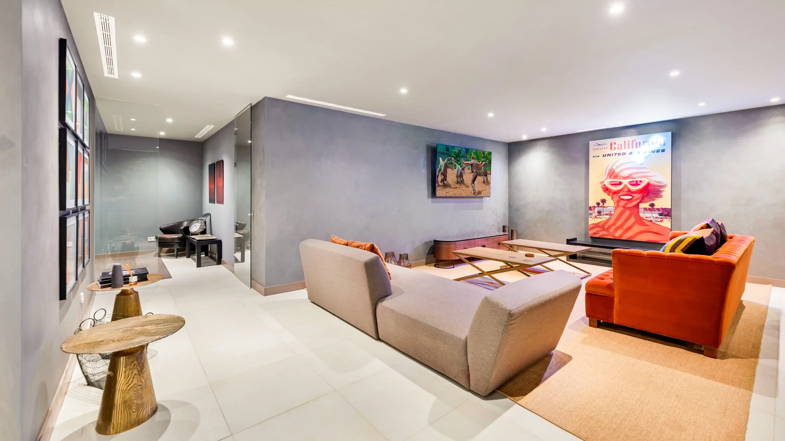 On the lower level, unwind in the dedicated cinema room and an extra living room,, enjoy drinks in the stylish bar lounge, or catch up on work in a quiet, dedicated workspace. A compact wellness area is also available for yoga or light training sessions.