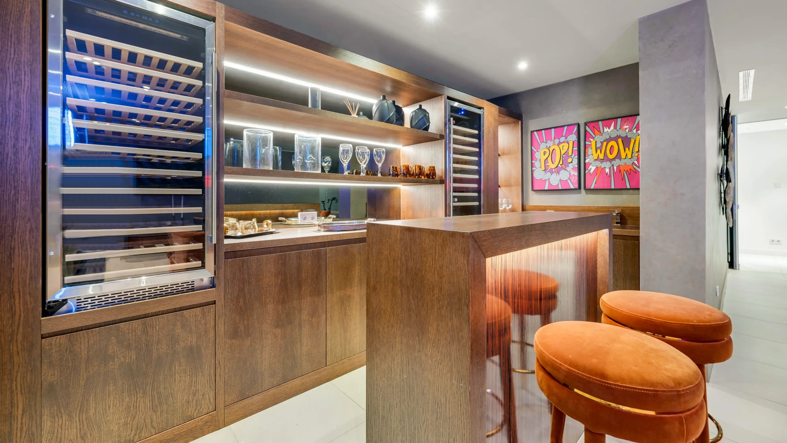 - Inside, the open-plan layout flows seamlessly between a sleek designer kitchen and sun-filled living spaces. Five luxurious bedrooms, a private cinema room, and a chic bar lounge make this villa perfect for both relaxation and entertainment, while pet-friendly amenities and high-speed Wi-Fi ensure every stay is effortless and refined.