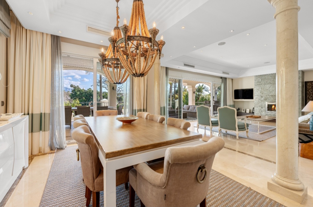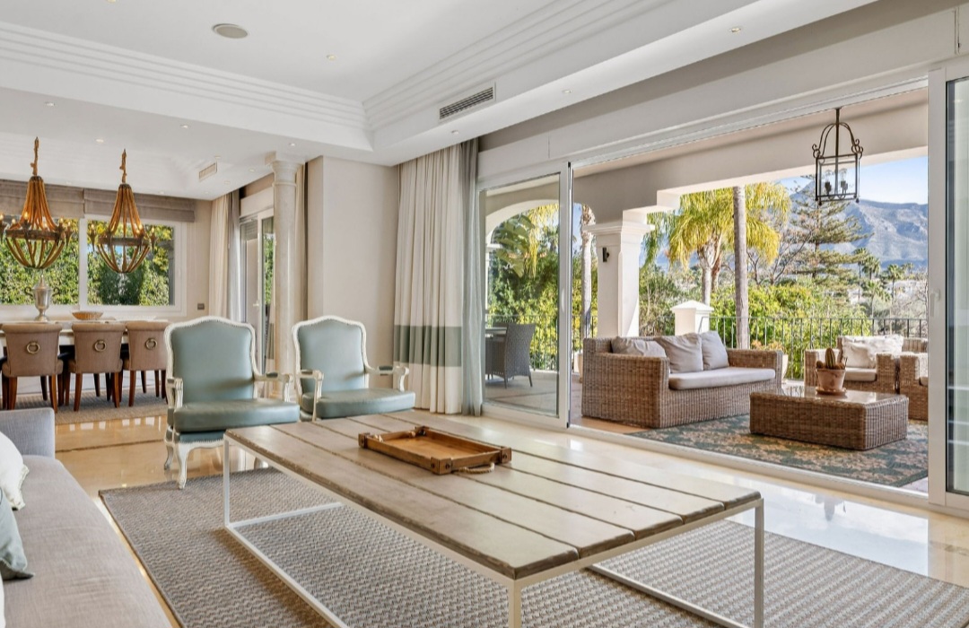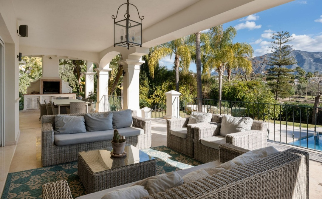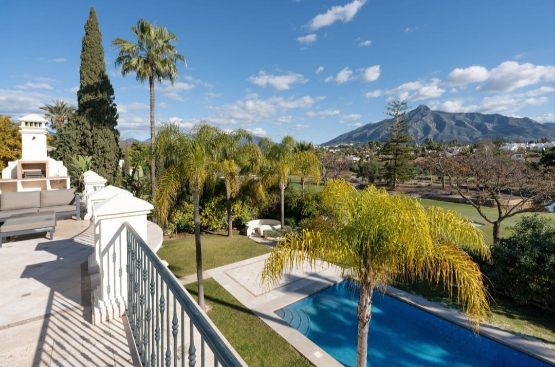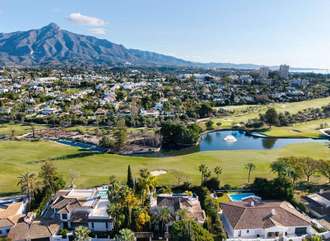 Welcome to Villa Las Brisas, a spectacular frontline golf villa set directly on the prestigious Las Brisas Golf Course in the heart of Nueva Andalucía. This 5-bedroom, 5-bathroom residence delivers panoramic views over manicured fairways and the iconic La Concha mountain, offering the perfect blend of luxury, location, and lifestyle. Designed with both relaxation and entertainment in mind, the villa combines elegant modern interiors with a warm, inviting ambiance that flows seamlessly from indoor to outdoor living.