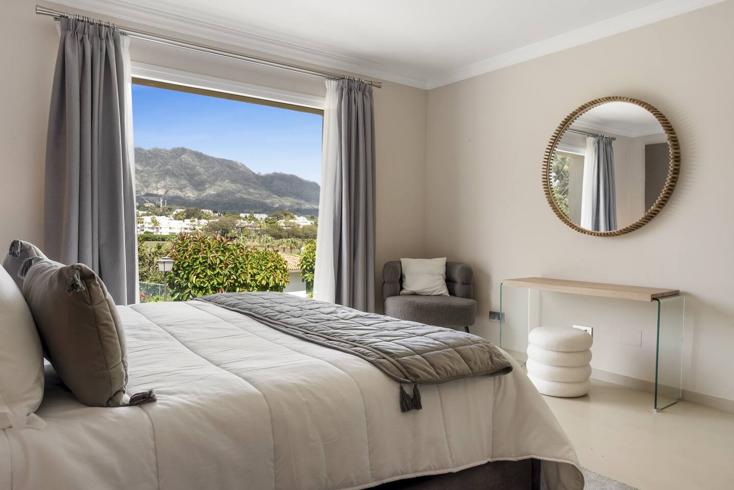 Step onto the terrace and you’ll be greeted by breathtaking views of the golf as well as Marbella’s iconic La Concha mountain, a majestic sight that can also be enjoyed from the dining area and even from some of the bedrooms—whether you’re sipping your morning coffee or winding down at sunset, the scenery is unforgettable.
