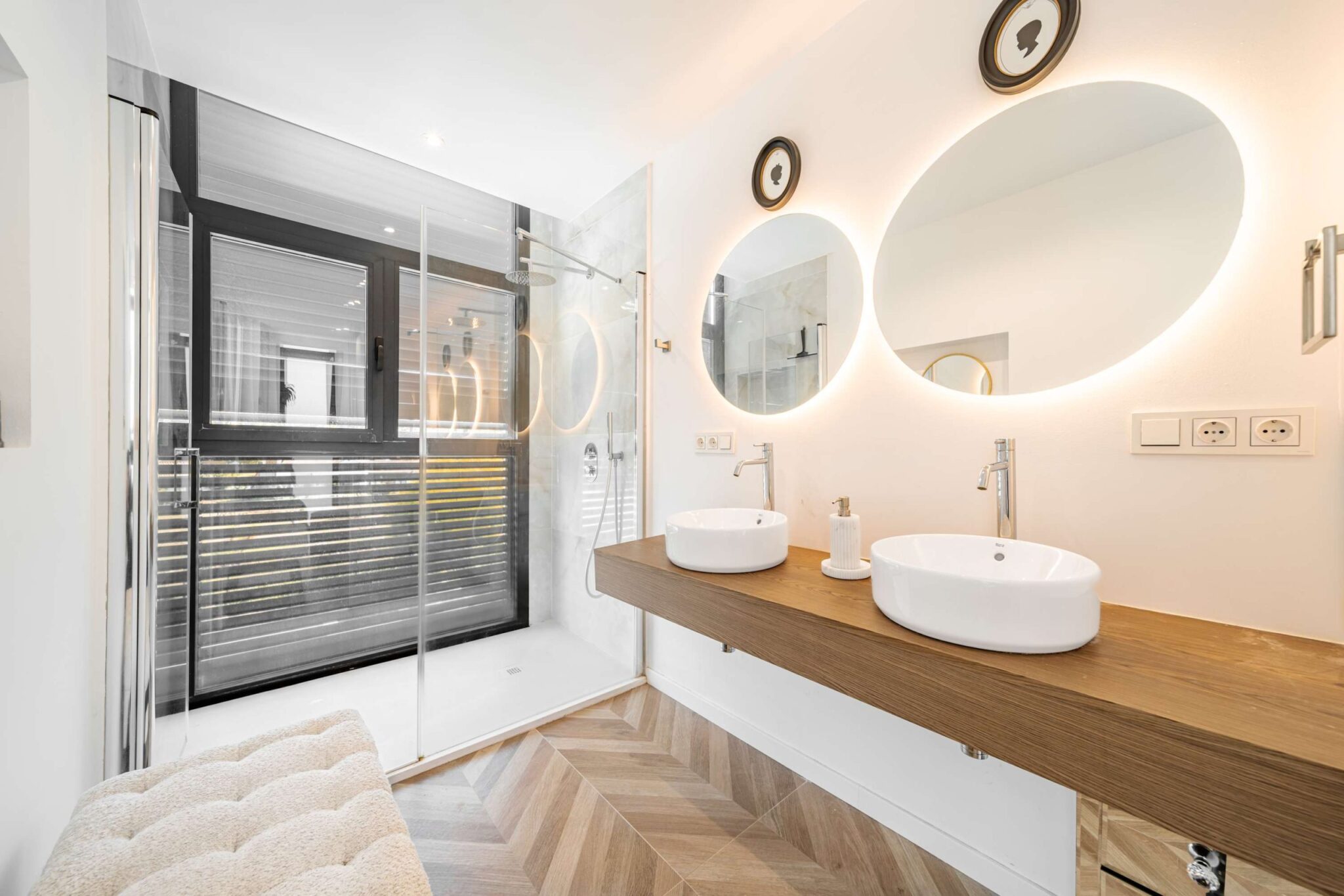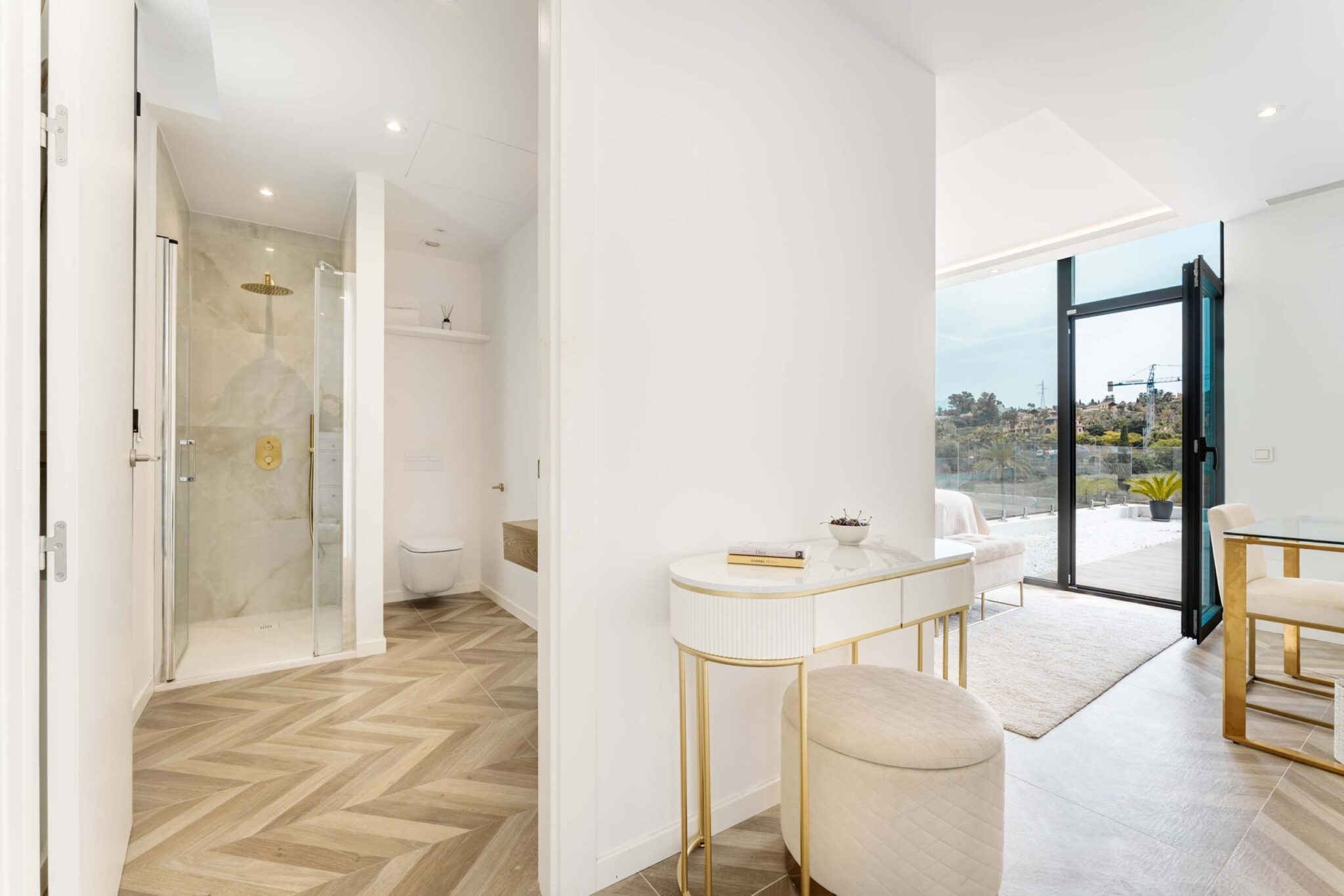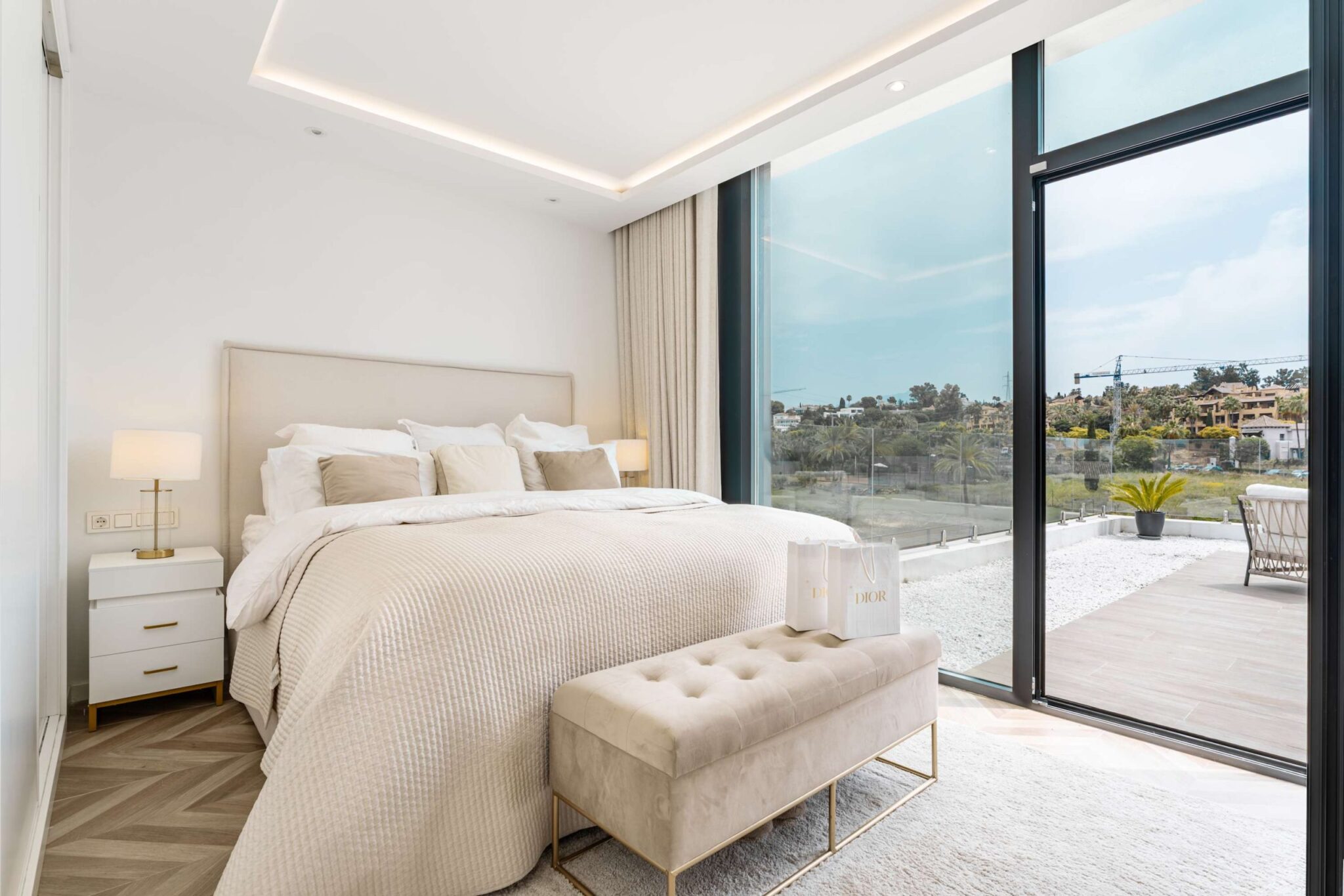 Experience modern comfort and style at Villa Paradise beautiful retreat for up to 8 guests. With 4 spacious bedrooms and 4 bathrooms, this villa is perfect for families and friends looking to relax in a peaceful setting. Designed with high quality materials, the villa features a bright, open plan layout that fills the space with natural light. The impressive entrance hall leads to a spacious living area with stunning views through floor to ceiling windows. The fully equipped kitchen, complete with a central island and breakfast area, is ideal for gathering, while the outdoor barbecue and dining space make al fresco meals a delight. Step outside to a beautiful private garden, where a sparkling pool, sunbeds, and lounge areas invite you to unwind. Enjoy the jacuzzi or simply take in the peaceful surroundings, this villa is designed for relaxation. Whether you’re looking for a quiet retreat or a stylish getaway, Villa Francesca offers a luxurious escape, close to everything you need.