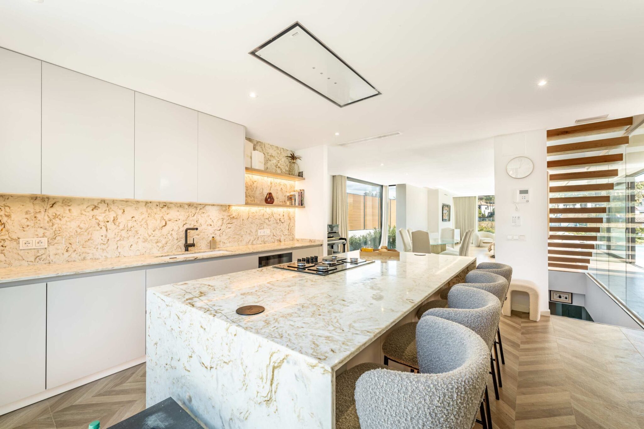 Nestled in the peaceful enclave of El Paraiso, the villa offers the perfect blend of seclusion and convenience, just a short 3-kilometer drive from the beach. This stunning villa overlooks the beautiful El Campanario Golf Course and is within an 8-minute drive of three other renowned golf courses: El Paraiso Golf, Atalaya Golf, and Guadalmina Golf. For those seeking a taste of luxury, the iconic Puerto Banus marina is only 10 minutes away by car. Surrounded by lush Andalusian landscapes and neighboring upscale estates, this villa provides a serene retreat with easy access to some of the best golf and coastal experiences the region has to offer.