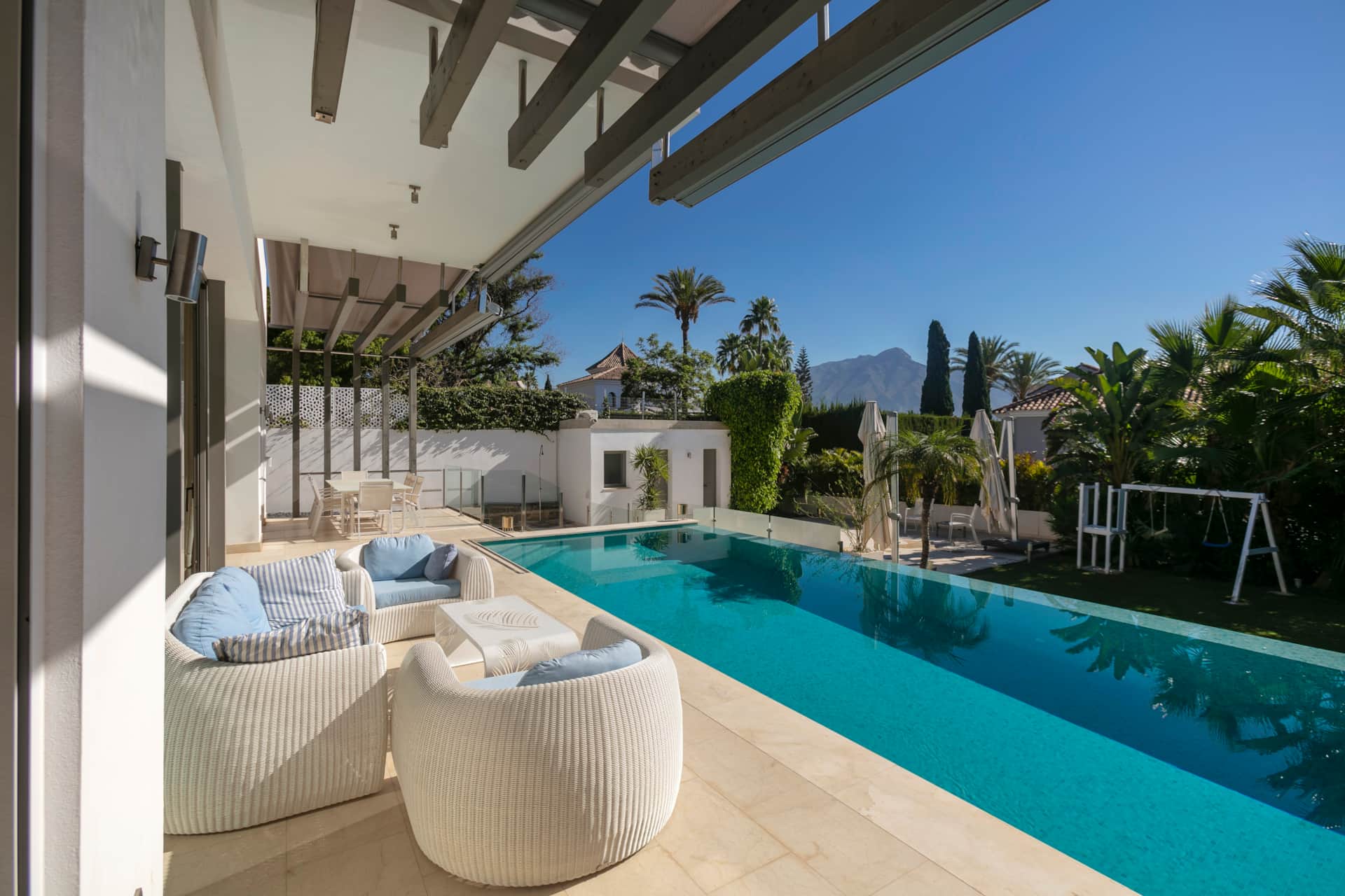 Beautiful and modern 5 bedroom villa in La Quinta available for holiday rentals! This amazing property is perfect for families and sensible groups, and it’s proximity to numerous golf courses makes it ideal for golfer groups. Private, yet well connected, the villa’s location allows guests to retreat to peace and tranquillity with the possibility of reaching the beach, Puerto Banús and all of Marbella’s amazing hotspots quickly and easily (Puerto Banús is less than 15 minutes drive).