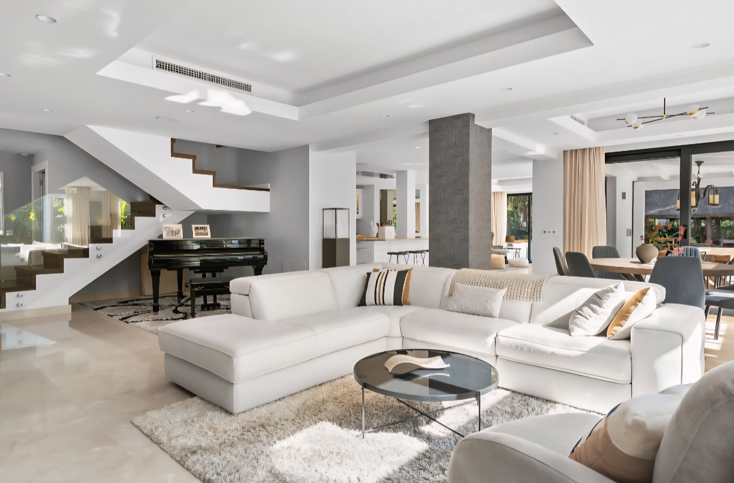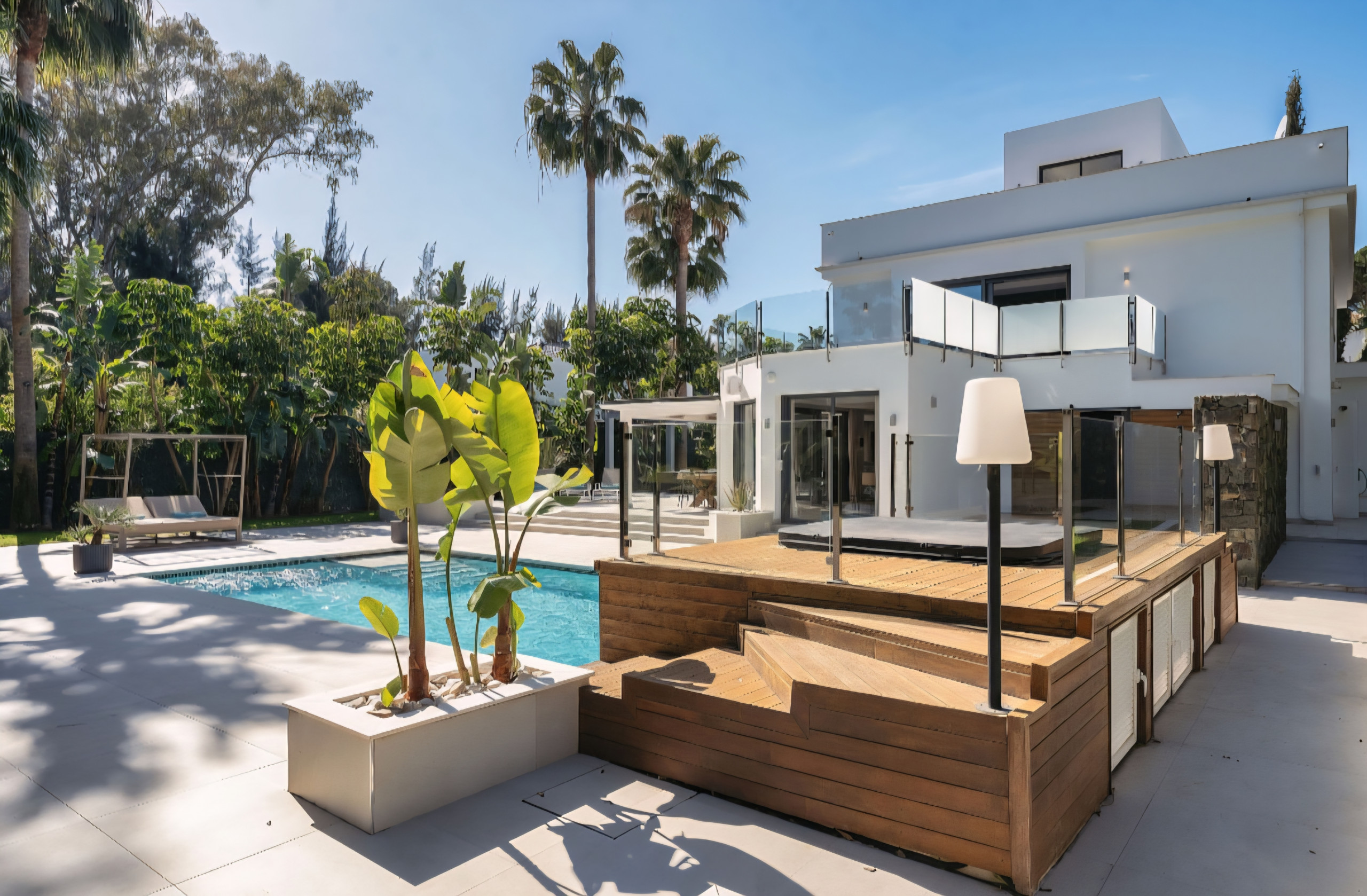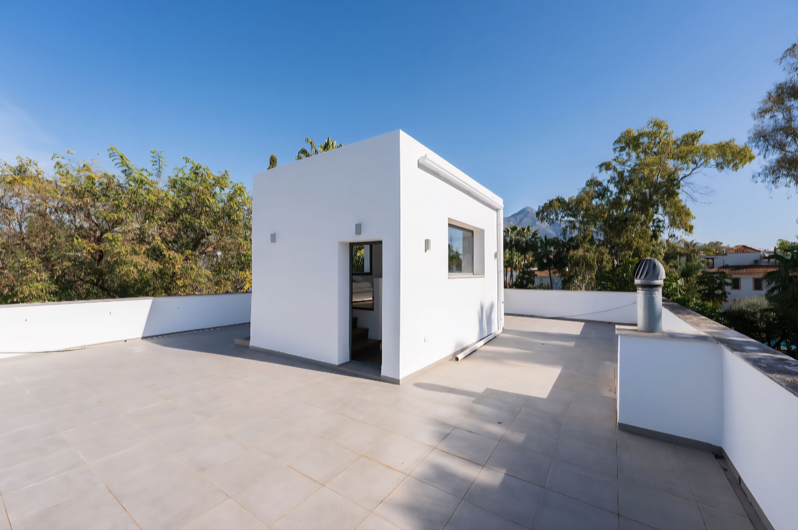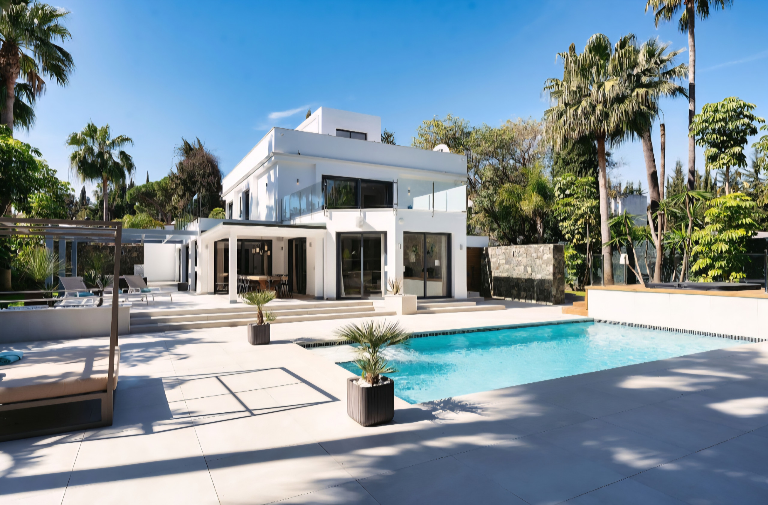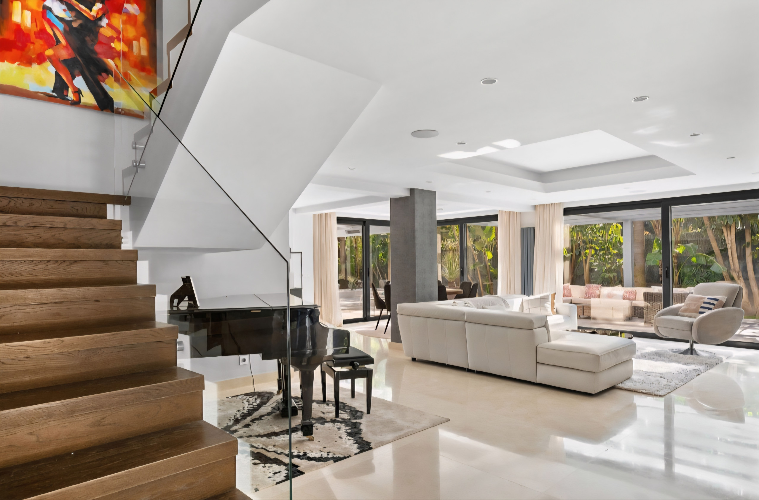Introducing Villa at Las Brisas, a refined 5-bedroom contemporary residence where clean architectural lines meet relaxed Mediterranean elegance, perfectly situated in the heart of Nueva Andalucía, just steps from Los Naranjos Golf Club. This prestigious area is renowned for its lush green fairways, world-class golf, and a vibrant lifestyle with fine dining, boutique shopping, and easy access to Marbella’s golden beaches. Living here combines tranquility, luxury, and convenience in one of the most sought-after corners of the Costa del Sol.