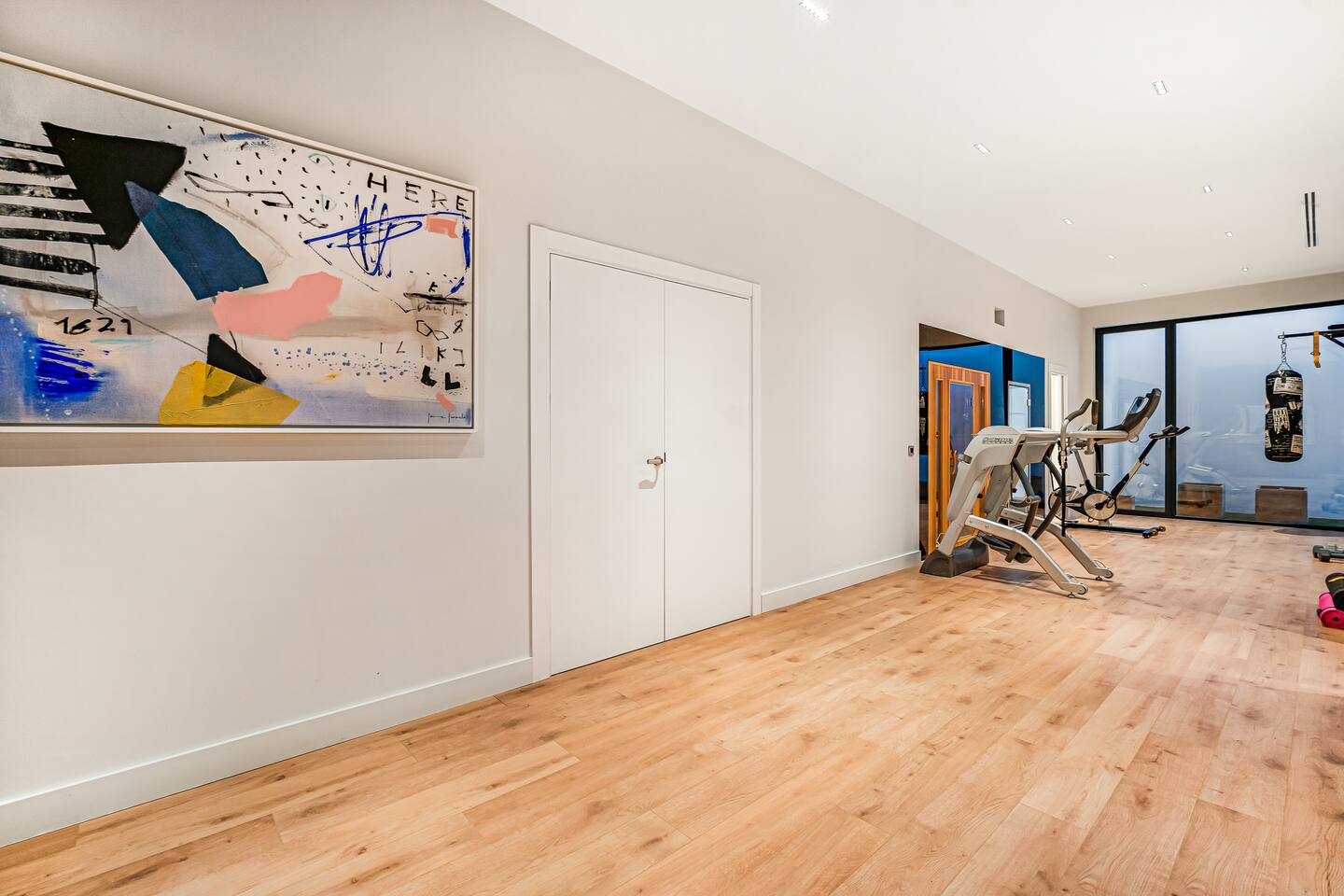 The lower level of the villa is dedicated to leisure and wellness, featuring a private gym, games or entertainment area, and additional spaces to relax or socialize.