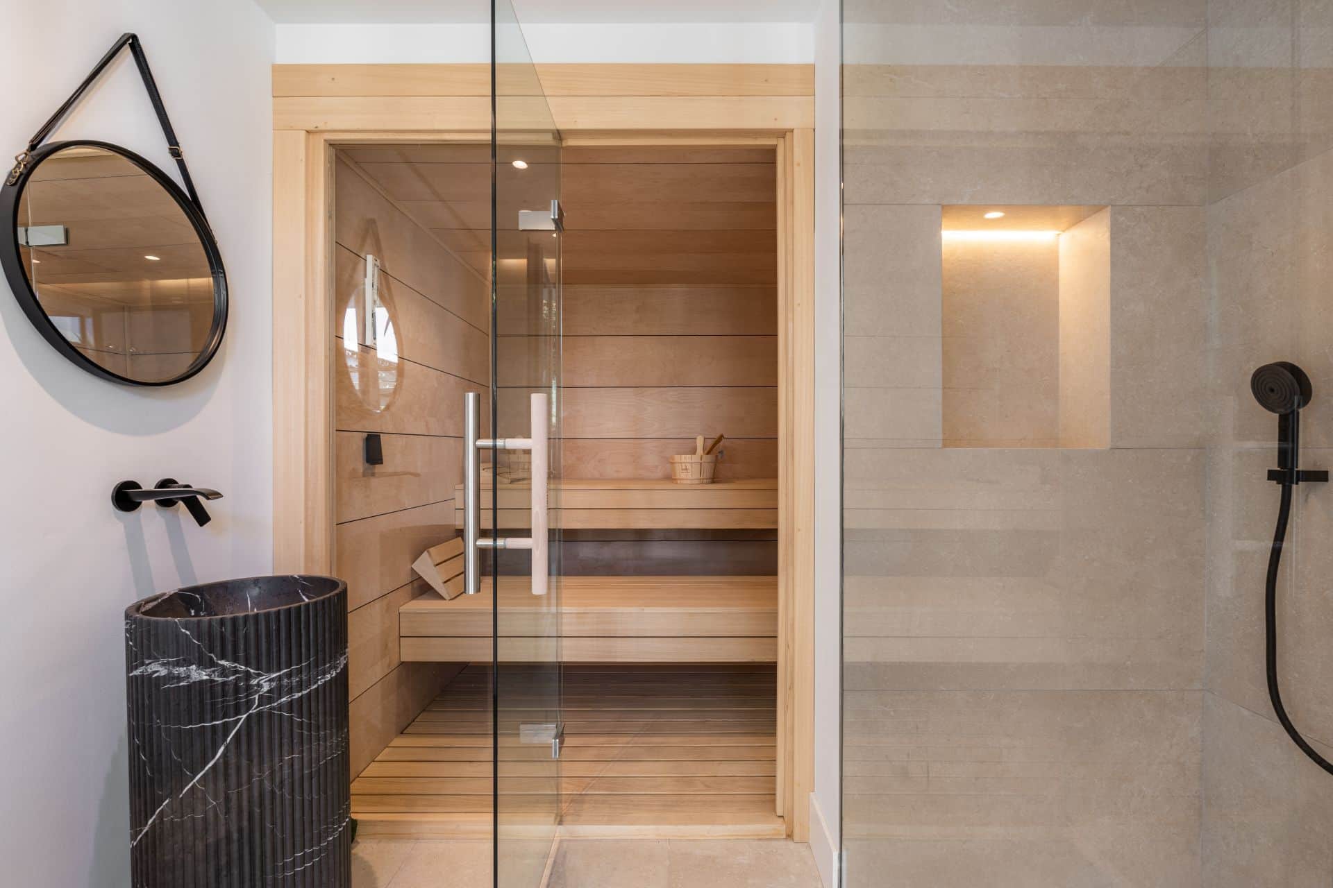 Inside, the villa is equipped with all the necessary amenities to ensure comfortable living all year round. The underfloor heating system ensures a warm and cosy atmosphere in the cooler months, while the state-of-the-art air conditioning provides a pleasant climate during the hot summers. Large windows flood every room with natural light, creating a sense of open space that harmoniously connects the indoors with the outdoors.