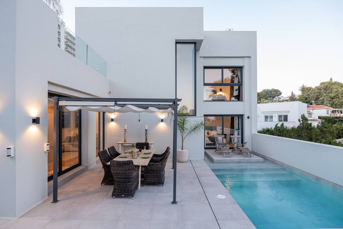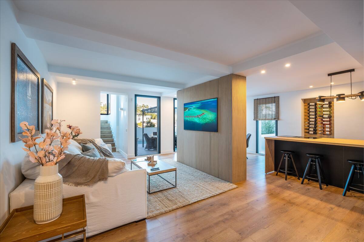 3 bed 4 bath modern villa in the heart of Nueva Andalucia with brand new furnishings. The villa has a big open space living and