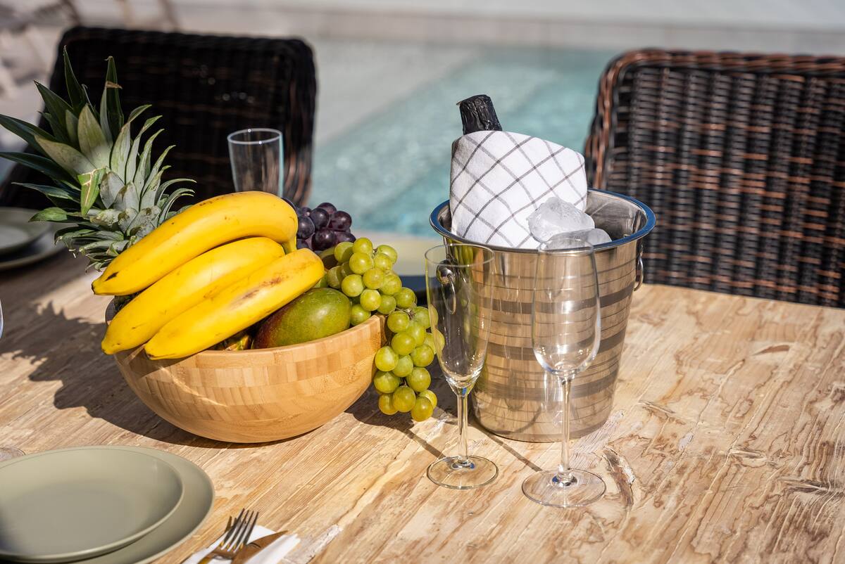 and swimming in the private sparkling pool. The villa also has an upstairs terrace perfect for catching the sun all day long. The