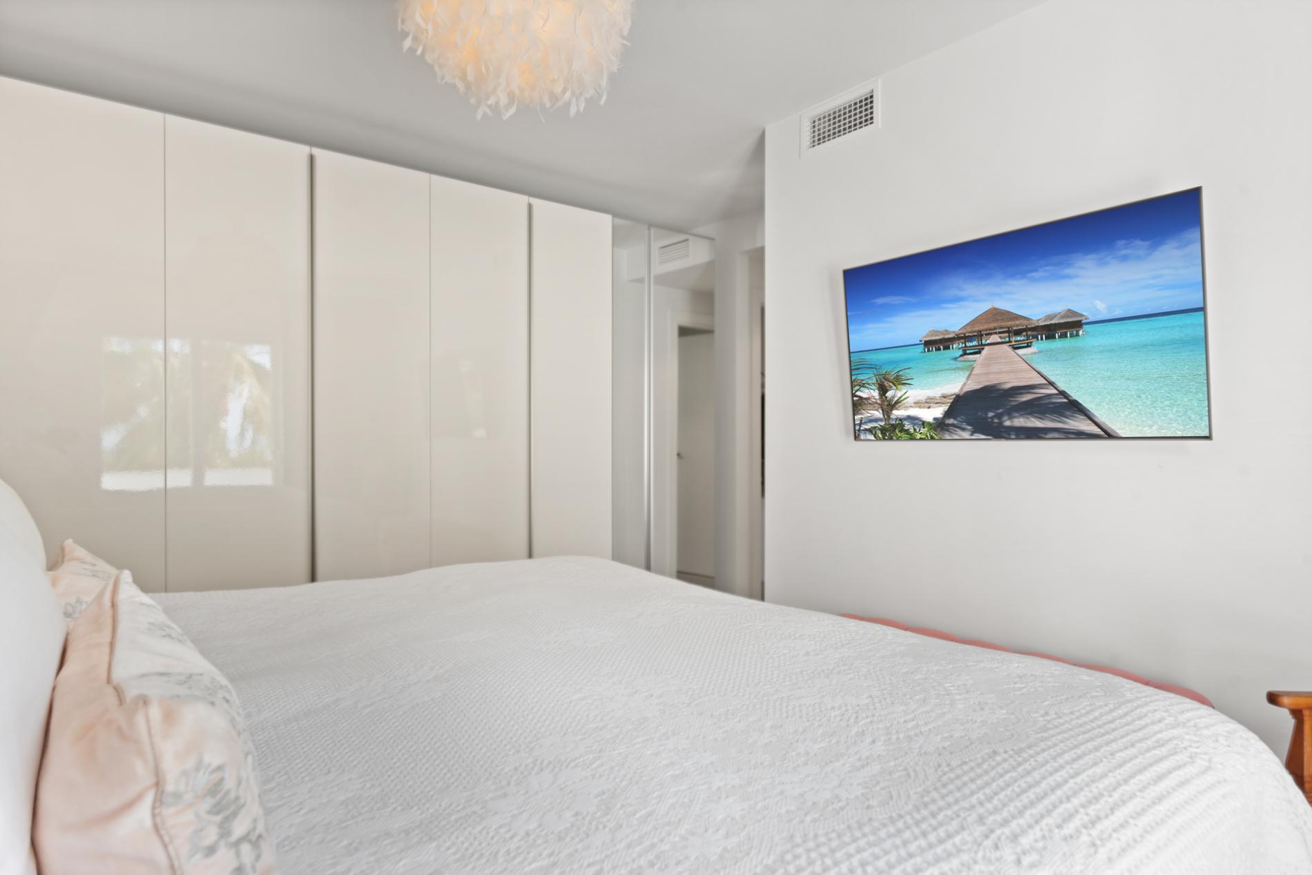 The 3 well-styled bedrooms all have 180 cm high-quality beds and wardrobes. An open corridor leads the way to the Master bedroom with a TV and an ensuite bathroom.