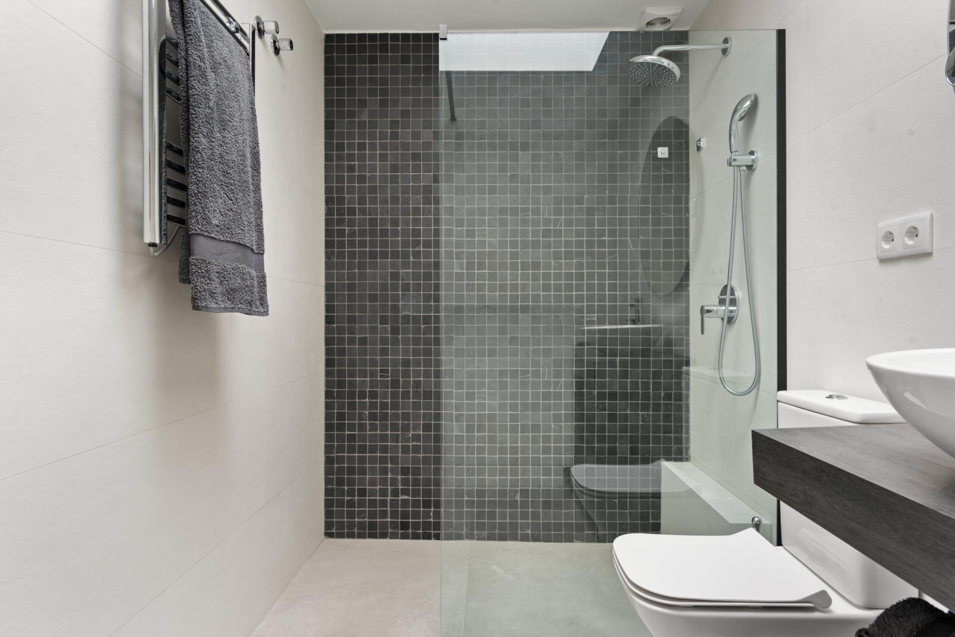Upon entering, you are wowed by the spacious open-plan kitchen, dining room and lounge that leads to the L-shaped terrace via 4 terrace doors. All windows and doors are equipped with sun-proofed glass to keep the heat out and protect the furniture. This is the ideal place to start the day, enjoy your daily breaks and finish off at any night.