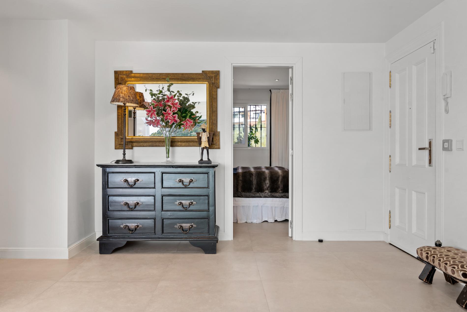 Thanks to its central location, everything you need is close by. In La Quinta (Los Halcones), you have a convenient shopping centre with a pharmacy, a grocery store and 4 nice restaurants. From the apartment you reach San Pedro in 5 minutes, Puerto Banus in 10 minutes, Marbella in 15 minutes and the beaches in 7. Access to the AP7 highway is only a few minutes away and from there you will be at Malaga airport in 40 minutes, Estepona in 15 and Sotogrande in just about 30 minutes.