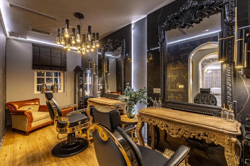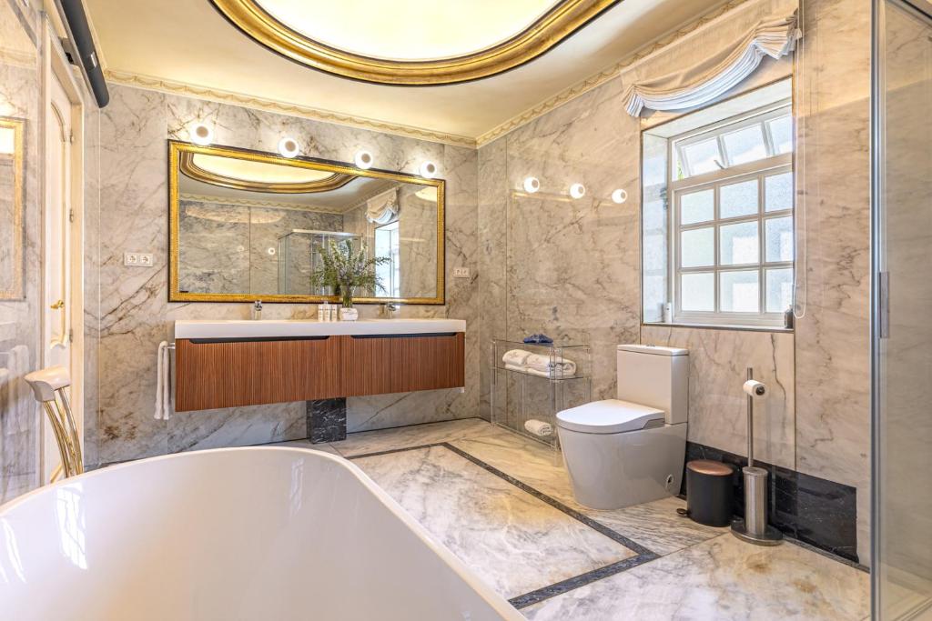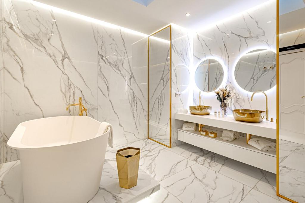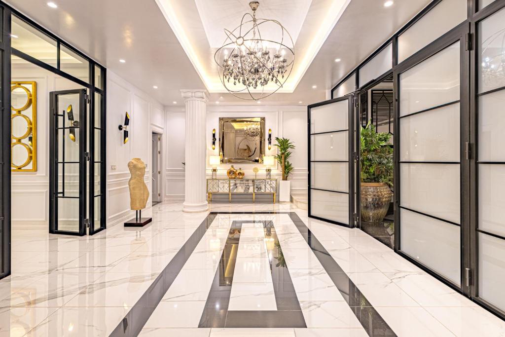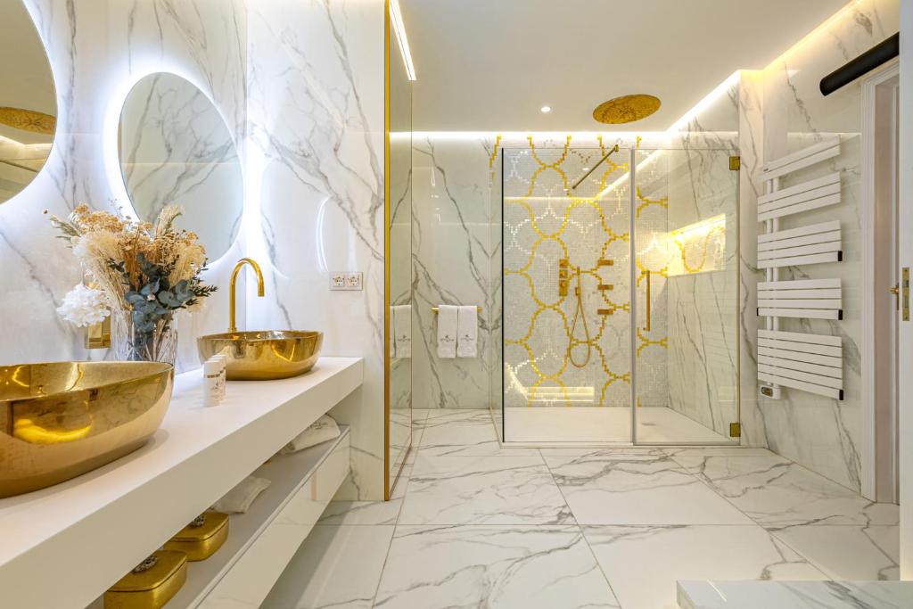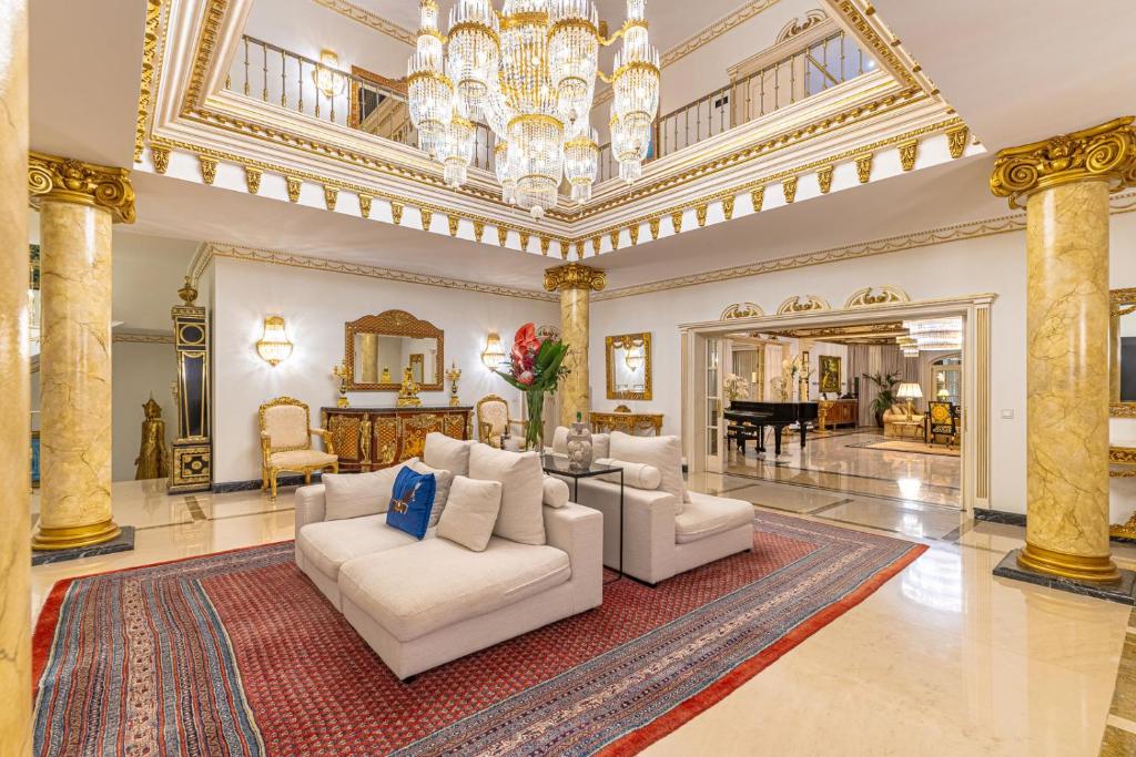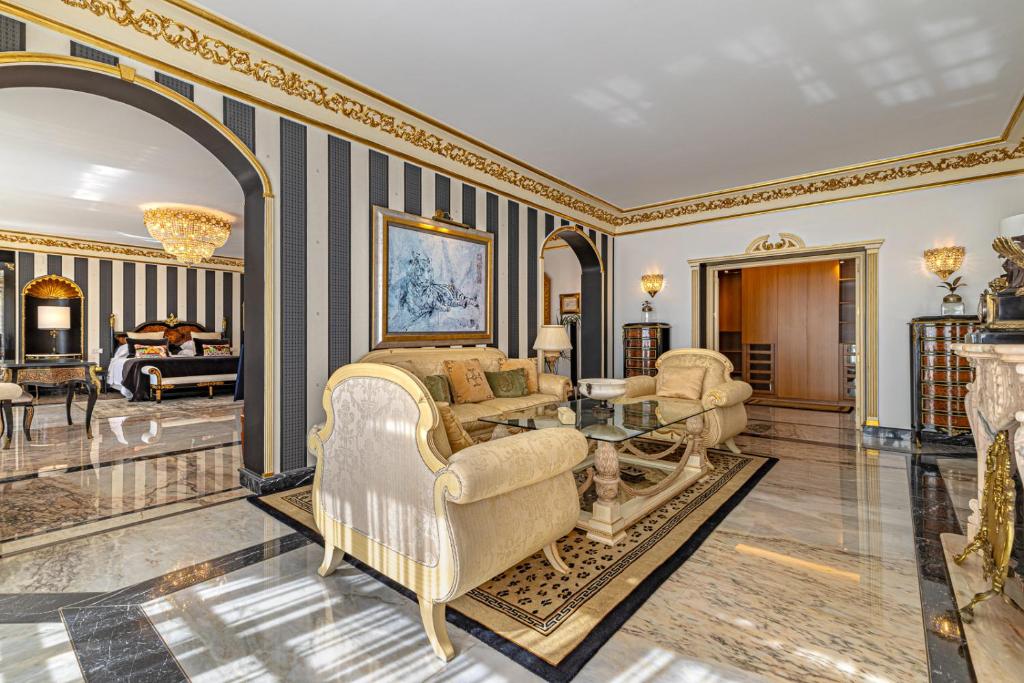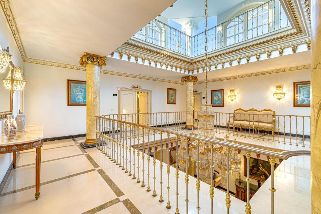 The upper floors represent a classic Baroque style with highly ornamental décor. Grand antique furnishings match the intricate architectural details of the original Villa.