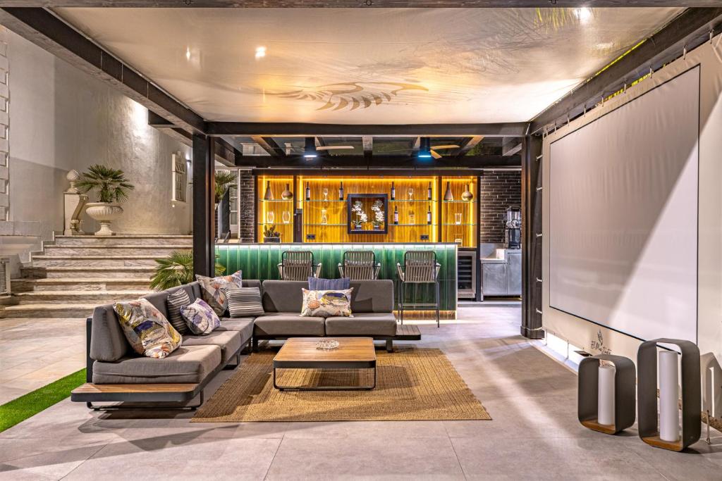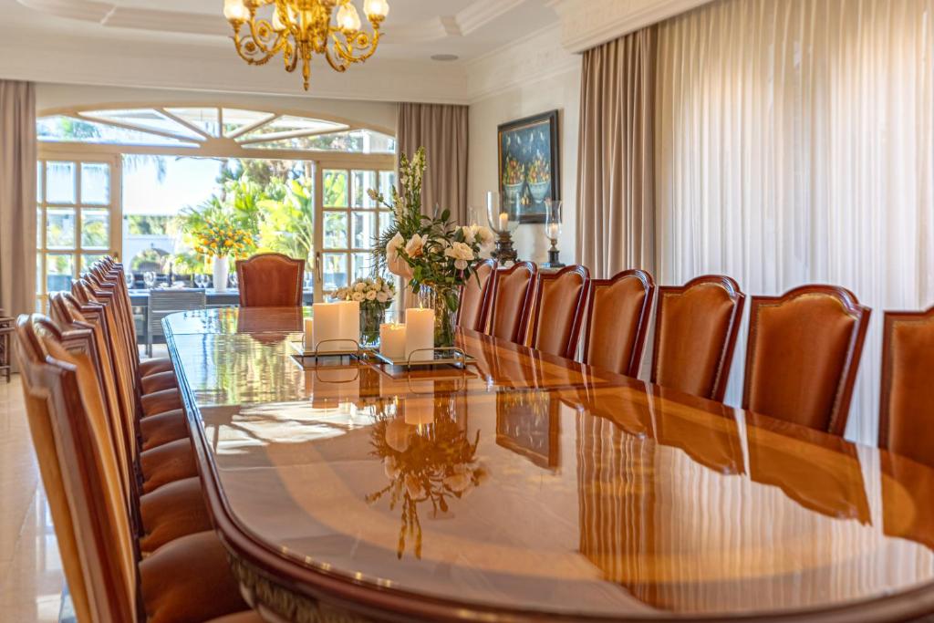 The villa spans 4,000 m² of private, tropical grounds and includes a main residence with six en-suite bedrooms plus two independent guesthouses, each with two en-suite bedrooms, ideal for large groups seeking space and privacy. Wake up to endless Mediterranean views and direct beach access from your own front garden. Highlights that make this home unforgettable: • Lush gardens wrapping the entire estate • La Danza Pool featuring Picasso’s original sketch, the only submerged Picasso artwork in the world • Private wellness center with indoor pool, sauna, and gym • Outdoor lounge with open bar and cinema screen • Full Sonos x Bang & Olufsen sound system • Paddle board for exploring the coastline • On-site EV charger Set directly on the waterfront of Puerto Banús, the villa sits steps from luxury boutiques, beach clubs, and the marina, yet remains peaceful, private, and fully secluded. You’ll enjoy full private access to the entire property, guesthouses, gardens, and all wellness and entertainment spaces. Our team greets you personally on arrival to ensure a smooth and welcoming check-in. You’ll have a dedicated contact available 24/7 from the moment you book. Housekeeping and room service are available daily from 7am to 3pm.
